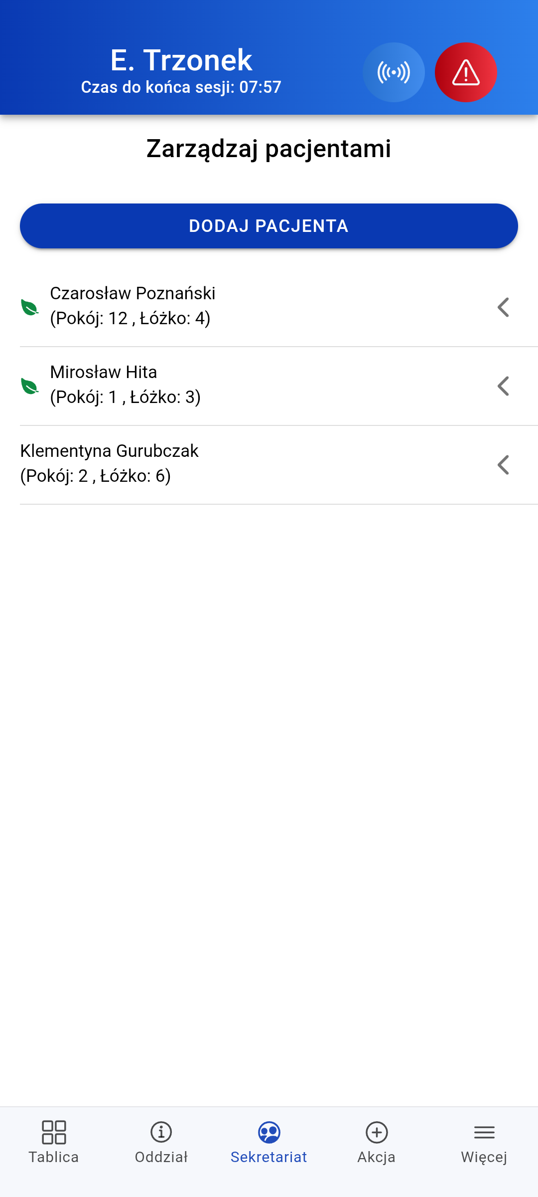 Personel medyczny dodaje pacjentów do systemu szybko i intuicyjne. Istnieje również możliwość integracji z istniejącą bazą szpitala, co usprawnia proces dodawania i minimalizuje ryzyko błędów.